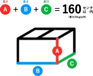 寸法は、縦+横+高さの合計が160cm以内のものをご使用ください。